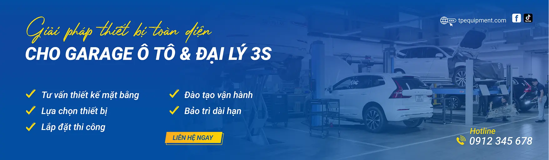 Tân Phát Equipment đã thực hiện nhiều dự án quy mô cho các Garage, Đại lý 3S và doanh nghiệp sản xuất. Chúng tôi chú trọng thiết kế giải pháp tối ưu, lắp đặt và chuyển giao vận hành theo quy chuẩn kỹ thuật, giúp khách hàng tăng hiệu suất & tối ưu chi phí vận hành.
